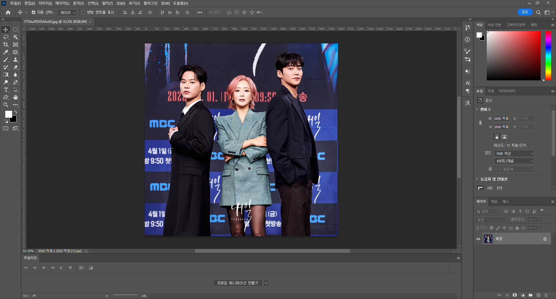 일단 먼저 이미지를 배경에서 편집할 수 있도록 자물쇠를 클릭해 꺼준다.