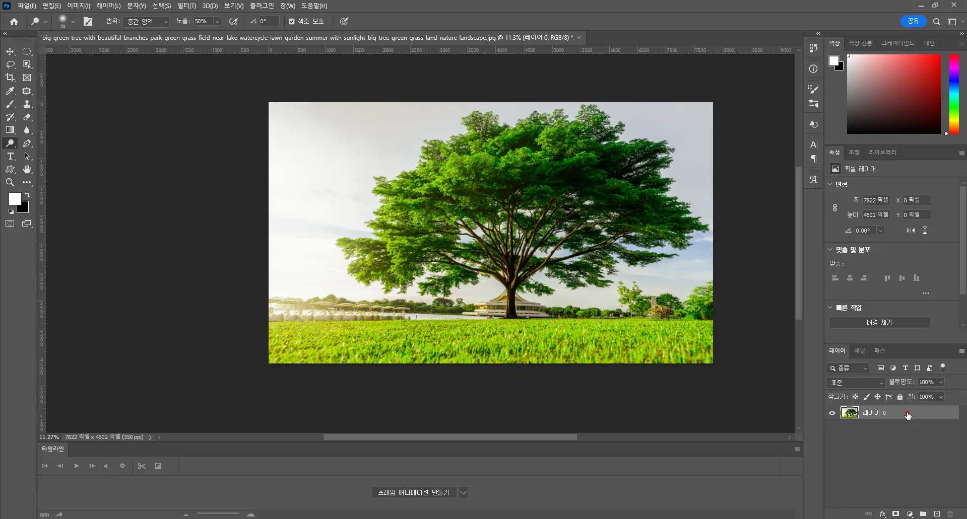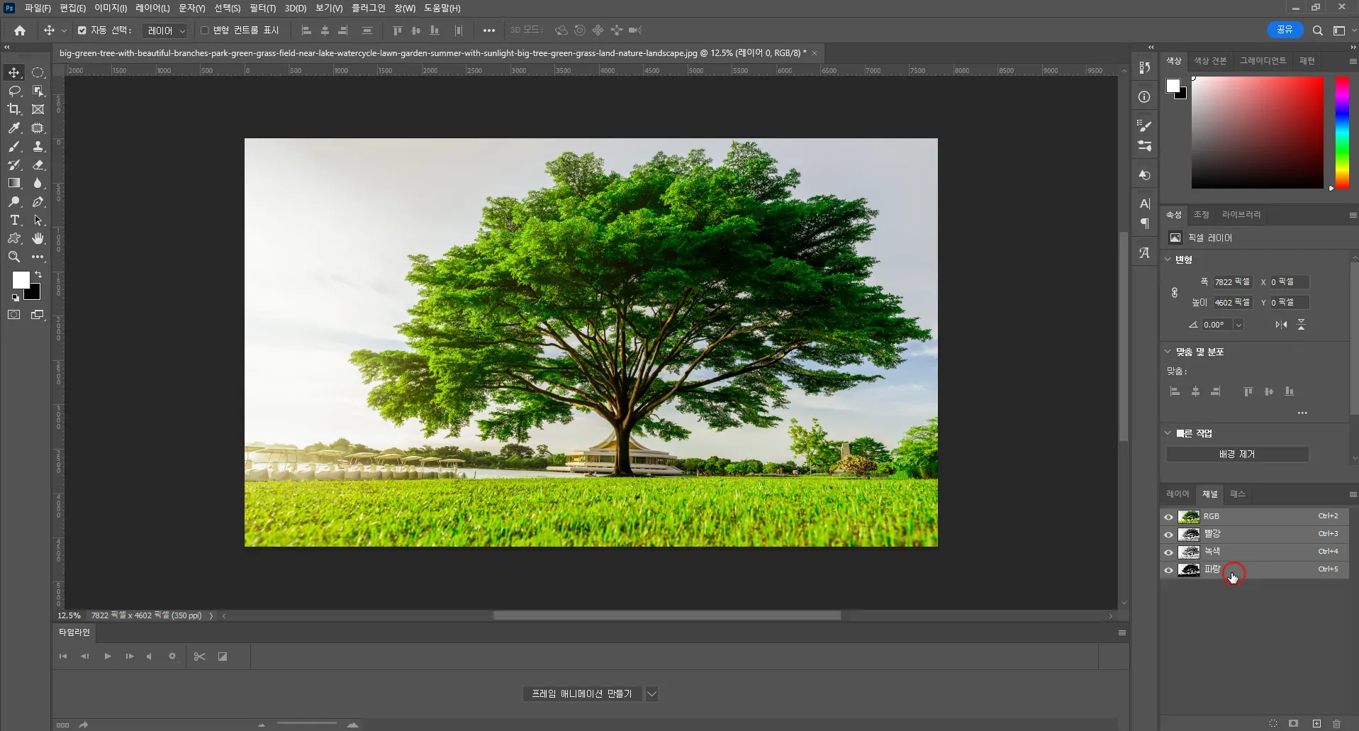 나무나 이런 것들은 살리고 뒤에 배경만 다르게 바꾸고 싶은데 이거 누끼 언제 다 따...?