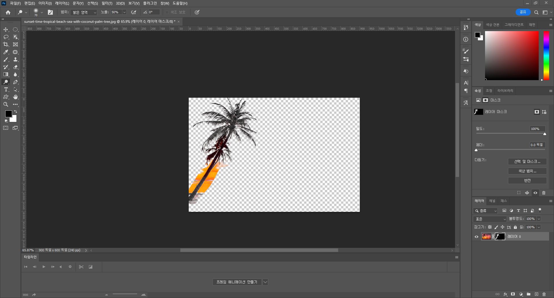 (마스크 클릭을 안 하면 원본 이미지에 검은색이 칠해지니 유의!)