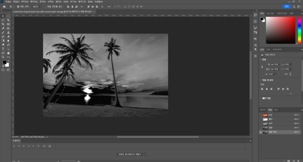 라쏘툴(단축키 L)을 이용하든 선택 도구(단축키 W)를 이용하든 뭐 암튼 작업할 영역을 잡아주자