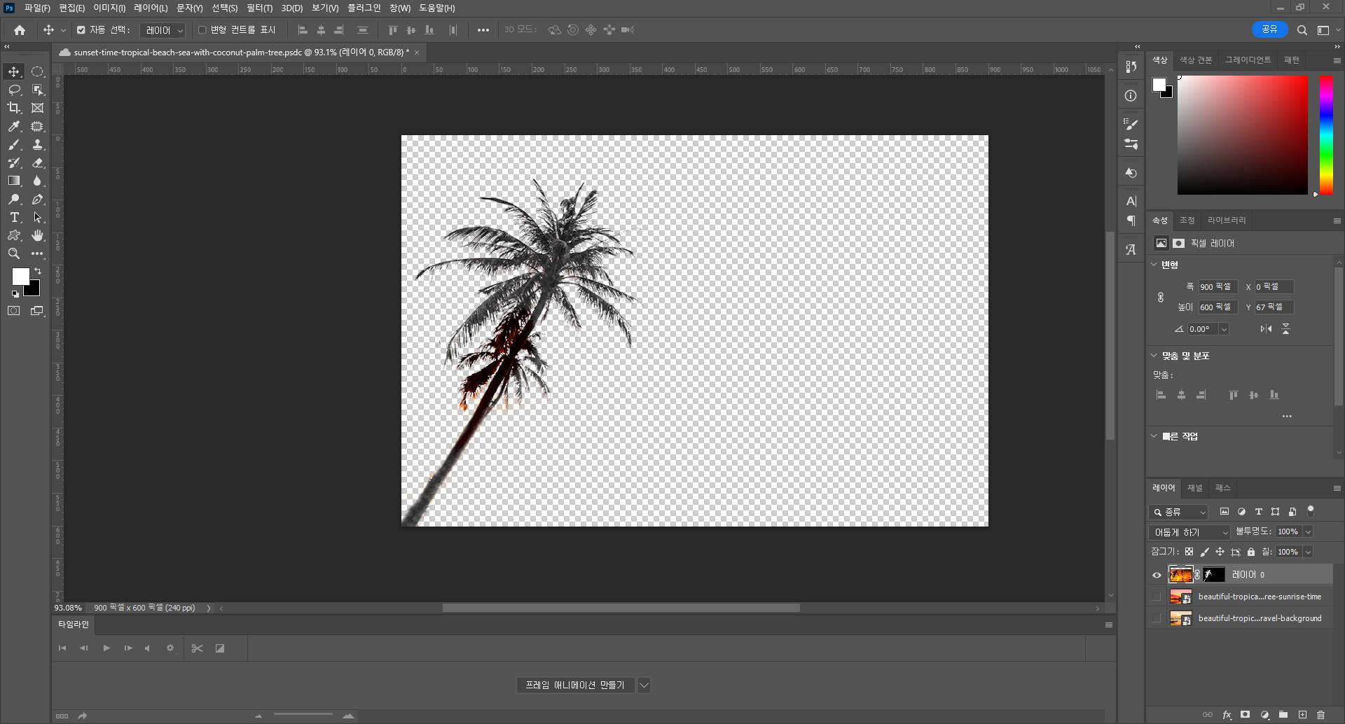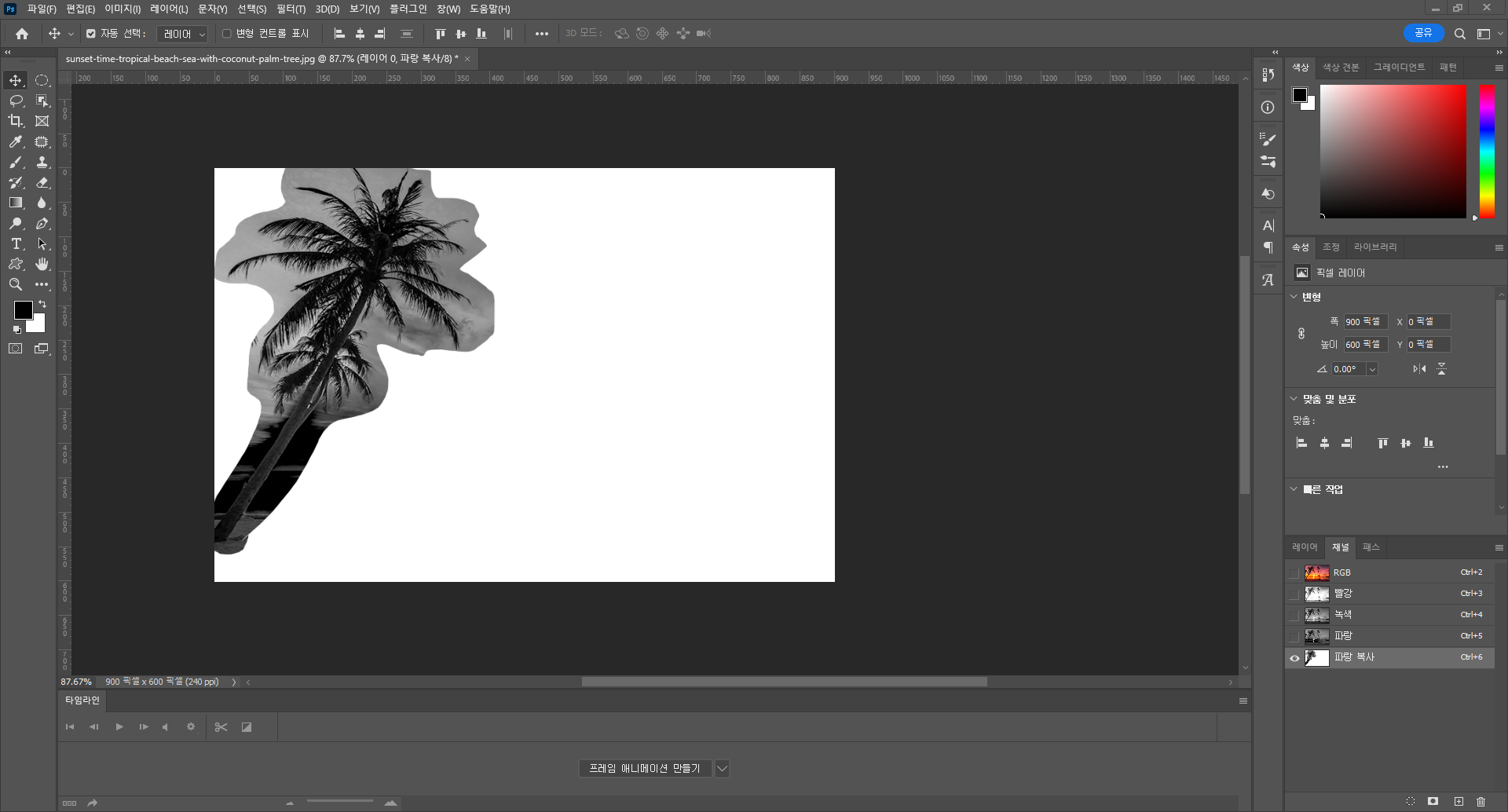 블렌더도 써보고 레벨 곡선(커브) 컬러밸런스 등등등.....